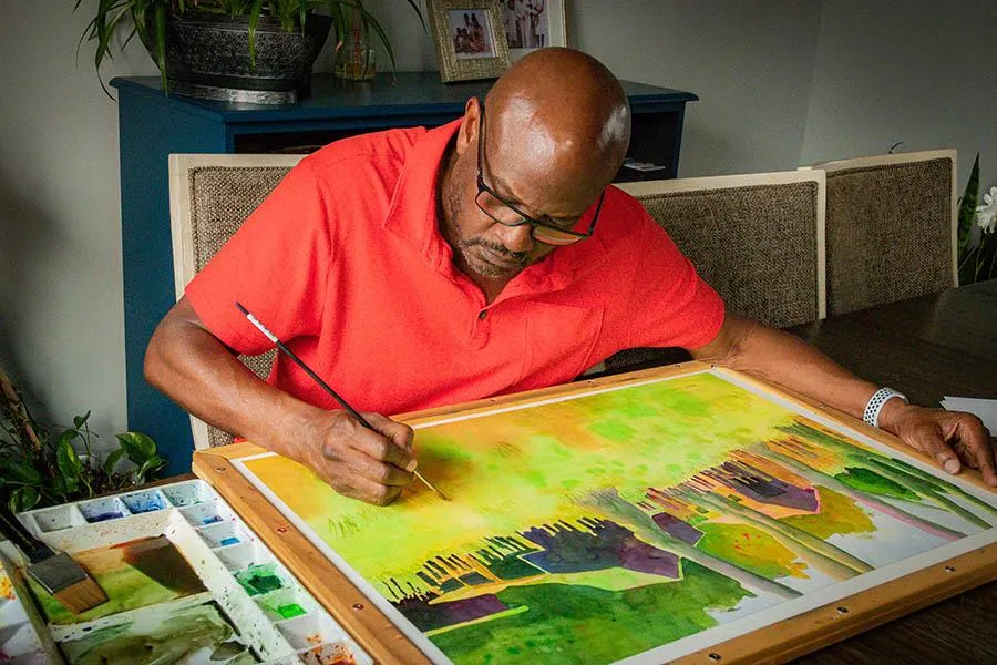 Edward’s creative process is less about control and more about surrender. He allows the water and pigment to mingle and wander—just as memories do. The transparency of watercolor mirrors the transparency of emotion; it blurs the edges, softens the truth, and invites the viewer to fill in the spaces with their own history.